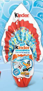 Kinder Gransorpresa: vede tre formati di uova di Pasqua, quello da 150 gr. con i protagonisti di Tom&Jerry, dei Supereroi Batman, Superman, Flash e Green Lantern per bambini e Tom&Jerry e i Morbidotti per le bambine, costa circa 8,70 euro. La versione maxi da 220 gr di Looney Tunes per bambini e Tweety pe bambine costa circa 13,40 euro, mentre il formato gigante da 320 gr con all’interno le sorprese di Hot Wheels per bambini e di Pop Pixie per le bambine costa circa 17,69 euro.
